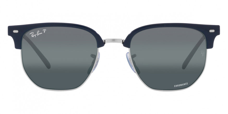 EB049 RAY-BAN NEW CLUBMASTER RB4416F 6656G6 55 DARK BLUE ON SILVER BLUE MIRRORED POLARIZED